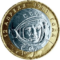 Монета 10 рублей 2001 года 40-летие космического полета Ю.А. Гагарина, 2001 год (СПМД)
