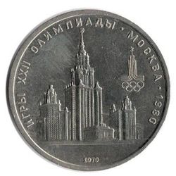 Здание МГУ. Олимпиада-80.1 рубль 1979 года.