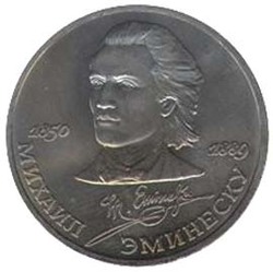 Эминеску. 100 лет со дня смерти.1 рубль 1989 года.