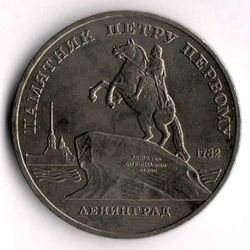 Памятник Петру в Ленинграде. 5 рублей 1988 года.